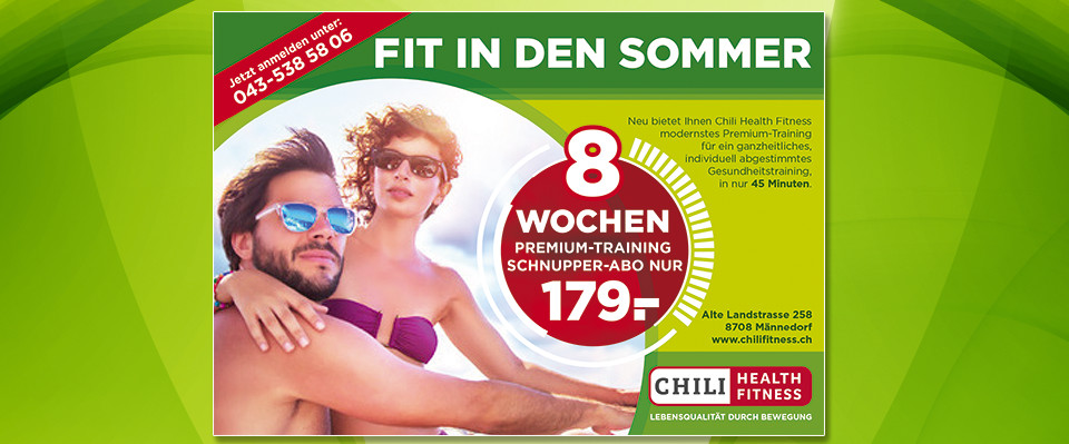 CHILI Fitness wurde im lokalen Fitnessmarkt als umfassendes Gesundheitscenter neu positioniert. Die Neuausrichtung im Premium-Segment mit milon+five Infrastruktur, erschliesst mit einem massgeschneiderten Leistungskatalog -PREMIUM-TRAINING- sowie dem kompletten Redesign des Unternehmensauftritts und dem visuellem Brush-Up des PoS in Männedorf, neue Zielgruppen im zahlungskräftigen Obersegment.