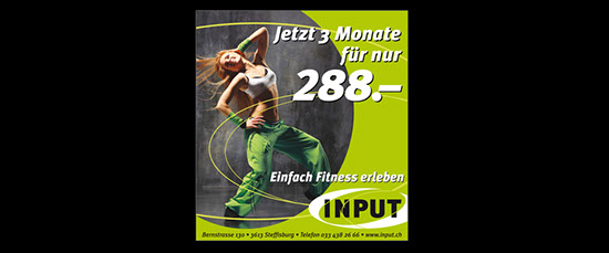 INPUT Fitness ins Steffisburg ist lokaler Marktleader im exklusiven Fitness-Segment im Raum Thun und unterhält eines der modernsten und hochwertigsten Fitness-Studios der Schweiz.